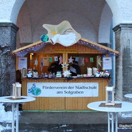 Besuchen Sie unseren Stand auf dem Christkindlsmarkt am Sprudelhof. Schüler, Eltern und Lehrkräfte bieten Werkstücke, selbstgemachte Plätzchen und handgefertigte Weihnachtskarten aus dem Unterricht zum Verkauf an. Unser berühmter Solgraben-Zaubertrank, Würstchen und die Solgrabenwaffeln runden das Angebot ab.