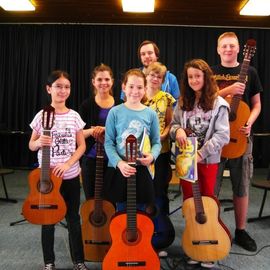 Den Anfang machte die Trommel-AG, die ihre Polyrhythmen in einer souveränen Art vortrug. Dass, obwohl die Gruppe in ihrer jetzigen Zusammensetzung erst wenige Wochen probt. Das Gitarrenensemble vereint ebenso Anfänger und Fortgeschrittene. Hier spielen Schülerinnen und Schüler aus vier verschiedenen Klassenstufen zusammen. Die etwas leiseren Töne der Akustikgitarre erfordert von den Spielern höchste Konzentration und von den Zuhörern höchste Aufmerksamkeit. Beides war gegeben, sodass die vorgetragenen Stücke ein echter Hörgenuss waren.