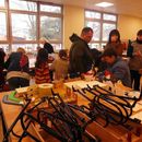 Im gut ausgestatteten Werkraum konnten die Besucher verschiedene Holzarbeiten bestaunen sowie selbst verschiedene Laubsägearbeiten ausprobieren. Nicht nur Schüler nutzten dieses Angebot, auch Väter und Mütter widmeten sich begeistert diesen Aufgaben, wobei sich phasenweise lange Schlangen vor den einzelnen Werkbänken bildeten.
