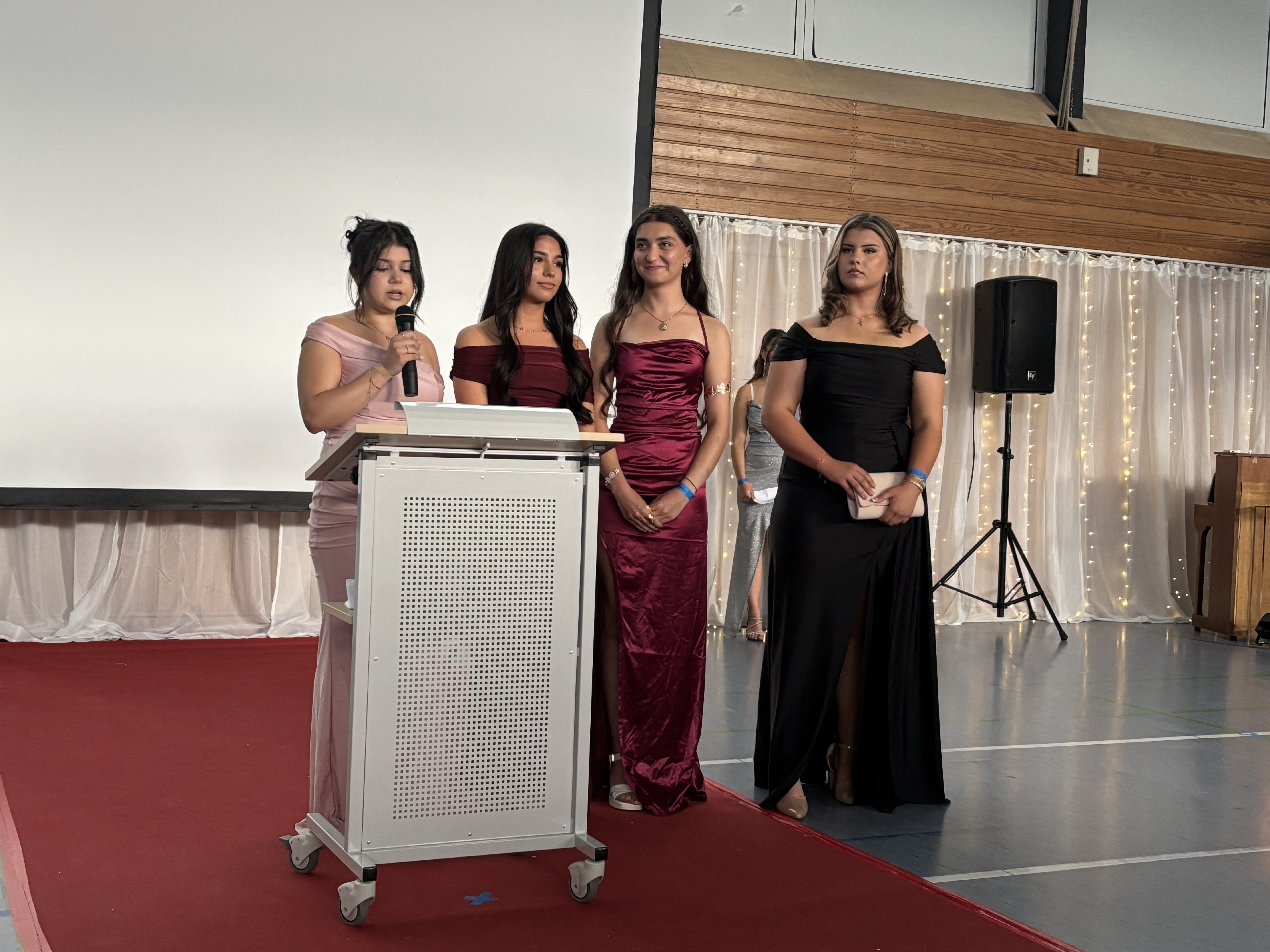 Schon beim Ankommen im festlich geschmückten Forum spürte man die Aufregung der Schülerinnen und Schüler sowie ihren Begleitungen. Dank des Fördervereins gab es leckeres Gebäck vom Rockenbäcker und kühle Getränke für alle. Im Foyer konnten Erinnerungsfotos gemacht werden, um diesen besonderen Tag festzuhalten.