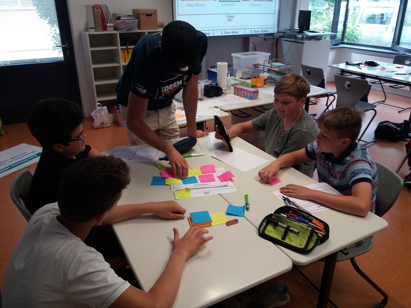 In diesem Jahr stand die Tour unter der Thematik ‚act:together_Zusammenhalt in Vielfalt‘. Hunderttausende Menschen haben in Deutschland eine neue Heimat gefunden. Gerade im Internet schlägt vielen Menschen, die anders sind, große Intoleranz entgegen. Die Situation Geflüchteter beschäftigt viele junge Menschen, wie insgesamt die Gestaltung einer vielfältigen Gesellschaft. Jugendliche überwinden in Schule und Vereinen schneller Grenzen, die Andere vor Probleme stellen. Durch den Einsatz von digitalen Medien können kleine Toleranzbewegungen groß gemacht werden. Nie waren Jugendliche besser vernetzt, nie waren die Voraussetzungen für eigenes Engagement so günstig. Think Big ermutigt Jugendliche, digitale Technologien einzusetzen, um aktuelle gesellschaftliche Herausforderungen anzugehen und eigene Projekte zu starten. Im Sinne der digitalen Teilhabe sollen junge Menschen von Nutzern zu Gestaltern der digitalen Welt werden, so lautet die Information des diesjährigen Flyers. In den rund neunzig minütigen Workshops drehte sich alles um das Erstellen von Videos zum Thema Respekt, Toleranz und Akzeptanz. Die Videos waren sehr vielfältig und konnten u.a. mit Hilfe von Apps wie Stop Motion, ChatterPix oder Vizmato erstellt werden. Da aufgrund des Alters und Schwierigkeitsgrades nicht alle Kinder der Solgrabenschule teilnehmen konnten, wurde in den Pausen für ein abwechslungsreiches Programm auch für jüngere Schülerinnen und Schüler gesorgt. An einer Fotowand konnte nach Lust und Laune experimentiert und gelacht werden, während die Hauptattraktion wohl auf die VR- Brillen (Virtual Reality) mit ihren Videoangeboten fiel. Ein absolutes Highlight zum Abschluss des Schuljahres an der Solgrabenschule!