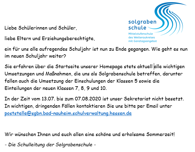 Weiterlesen … Schrittweise Wiedereröffnung an der Solgrabenschule ab 18. Mai 2020