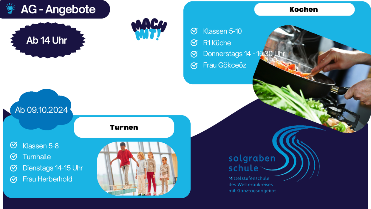 Die Teilnahme an allen Arbeitsgemeinschaften (Kurse) ist freiwillig. Einige Arbeitsgemeinschaften werden als offene Kurse mit wöchentlich wechselnden Schwerpunktthemen angeboten.